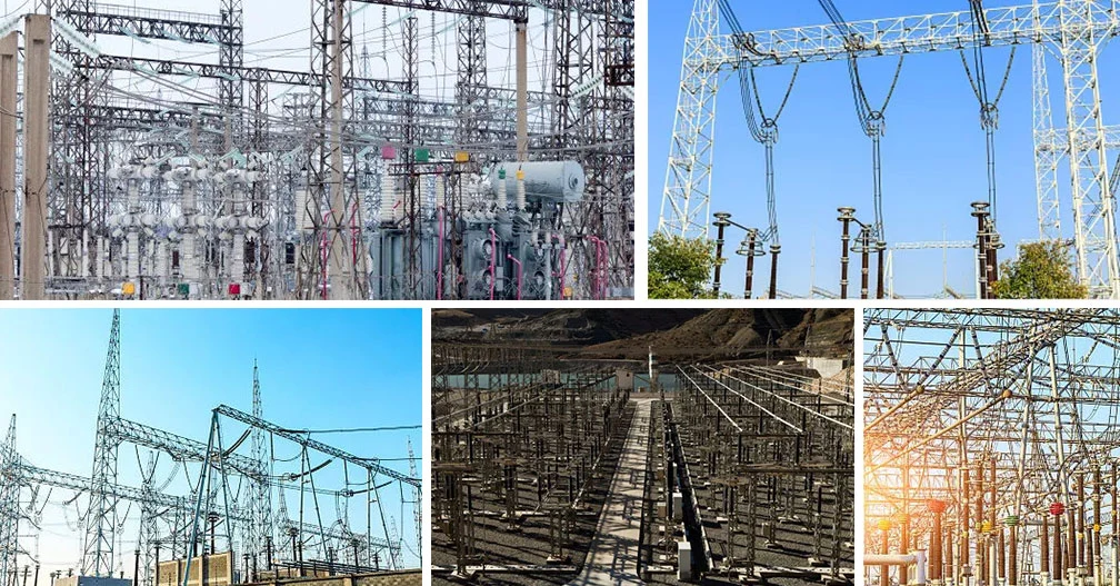 Fostáisiún agus sreang lasmuigh eile, trealamh den phríomh-struchtúr tacaíochta den ainm ginearálta. Déantar é a chinneadh de réir leibhéal voltais, scála, leagan amach trealaimh, coinníollacha tógála agus oibríochta agus coinníollacha aeráide áitiúla. De réir nádúr an leictreachais, éilíonn leibhéil voltais éagsúla achar áirithe idir na sreanga, na sreanga go dtí an talamh agus na sreanga chuig na struchtúir. Dá bhrí sin, tá struchtúr an fhostáisiúin tréithrithe ag colúin ard agus ailt bheaga, a bhaineann leis an struchtúr solúbthachta mór. Maidir le haicmiú cineál leagan amach teicneolaíochta, tá leagan amach meánach, leagan amach leath airde agus leagan amach ard. Úsáidtear leagan amach leath-ard agus leagan amach ard go príomha i bhfostáisiún le leibhéal ardvoltais.